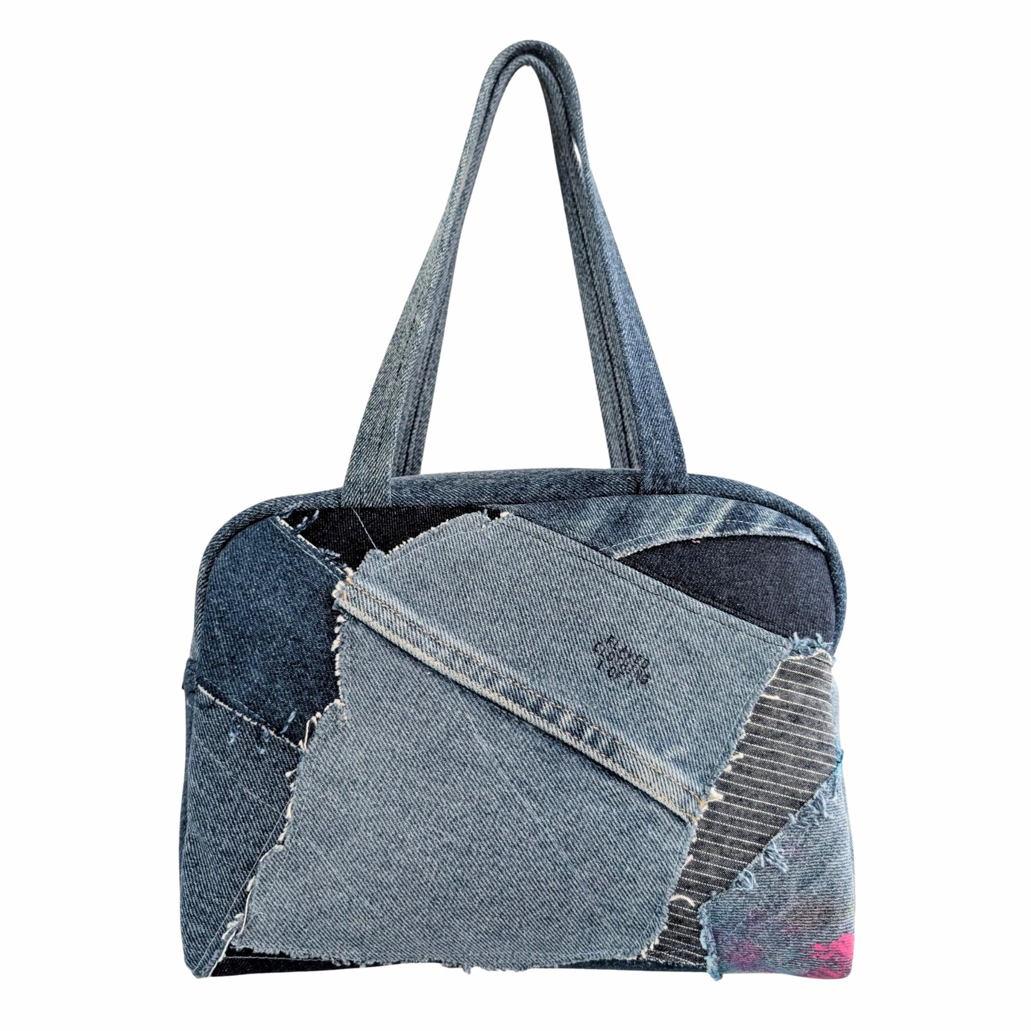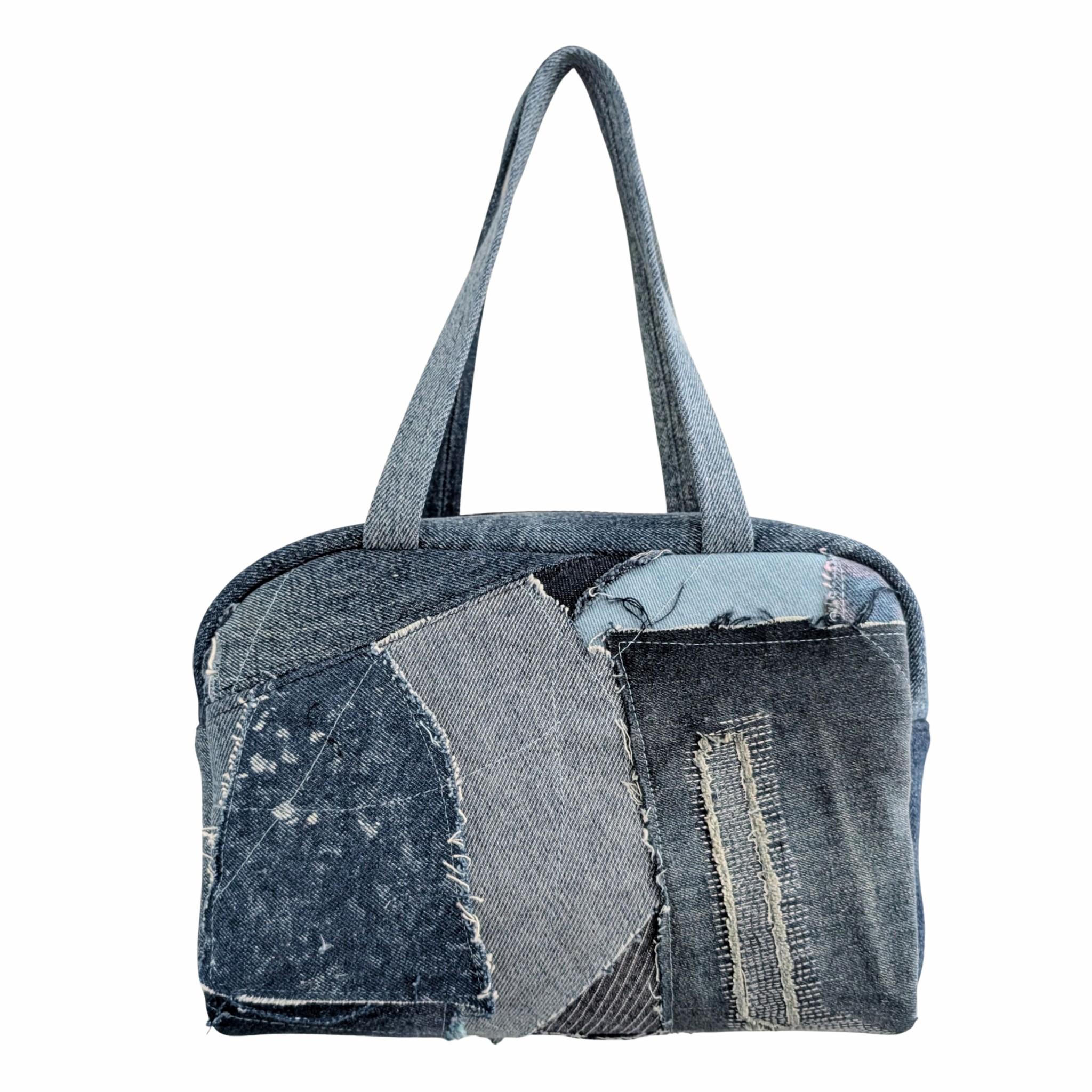 Crafted entirely from recycled denim, this 1-of-1 Boston bag is a statement in both sustainable fashion and functional design. Each patch is carefully selected and stitched by hand, creating an unrepeatable composition of textures, washes, and raw edges that celebrate imperfection as art.