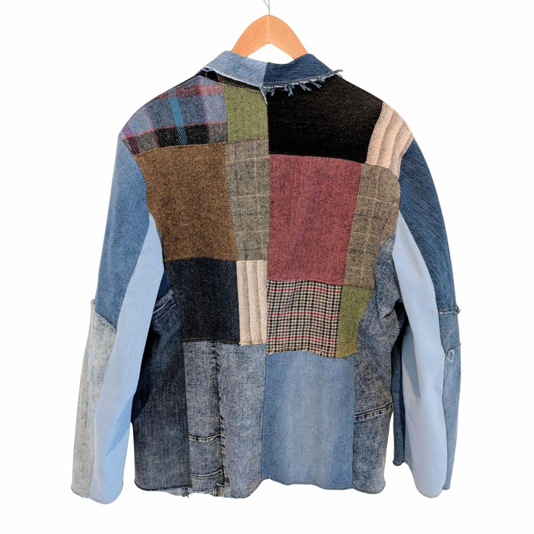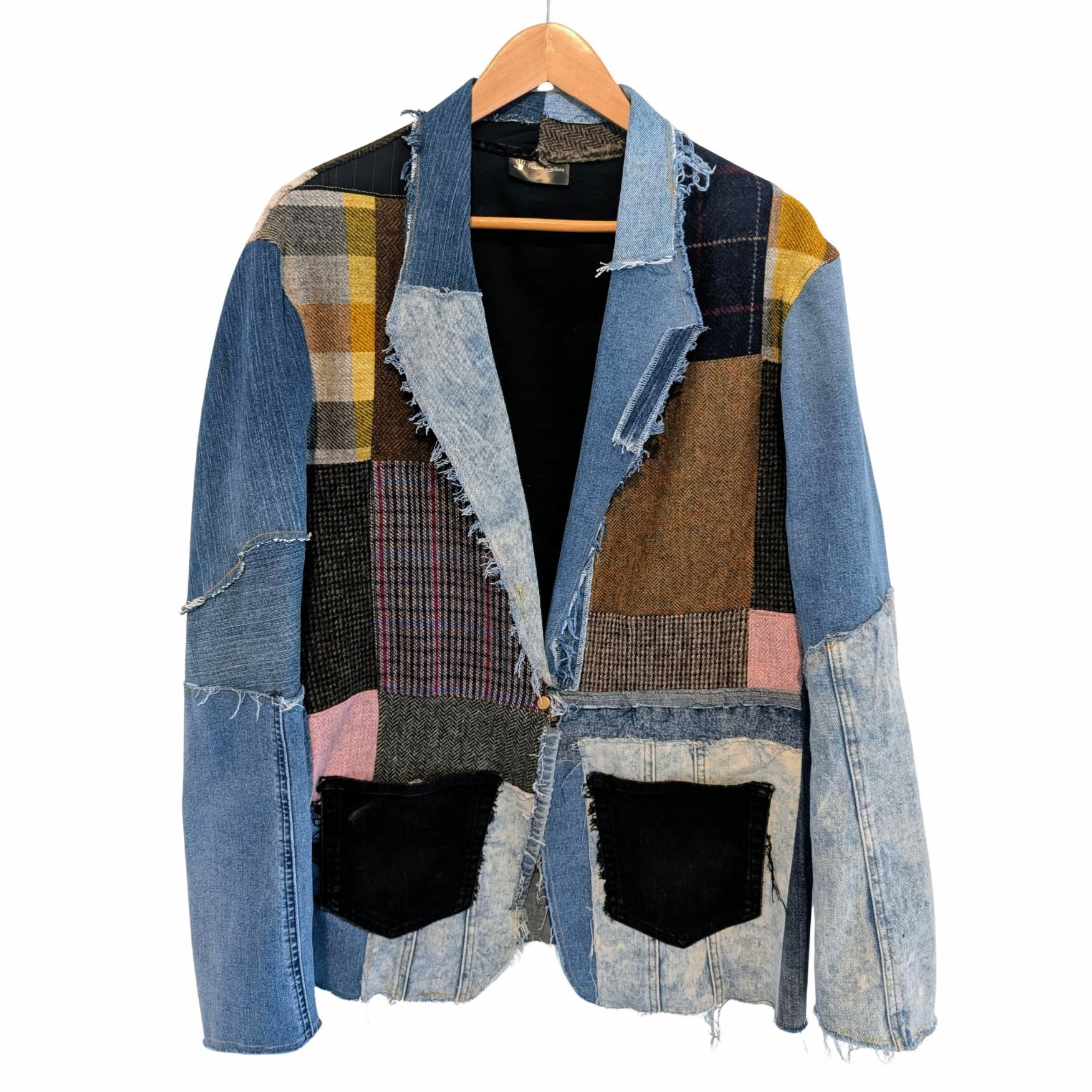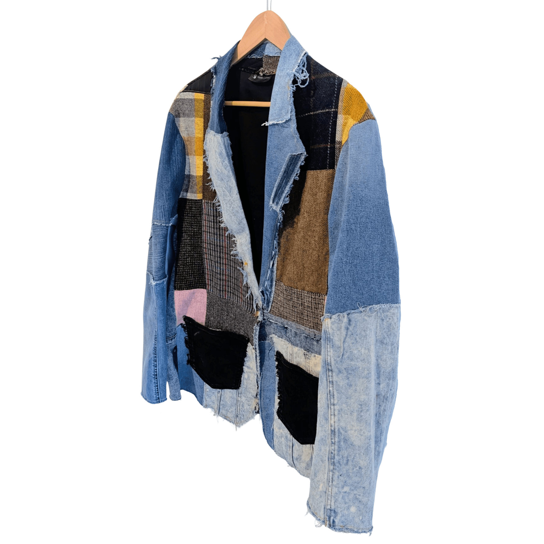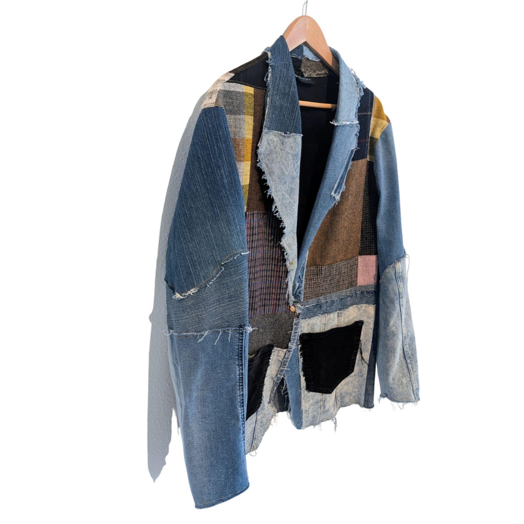 The Imperfect Blazer takes a classic silhouette and reworks it through texture, contrast, and intention. Designed with a peaked shawl collar and clean, unfaced front, this piece keeps its structure minimal—allowing the materials and craftsmanship to lead.