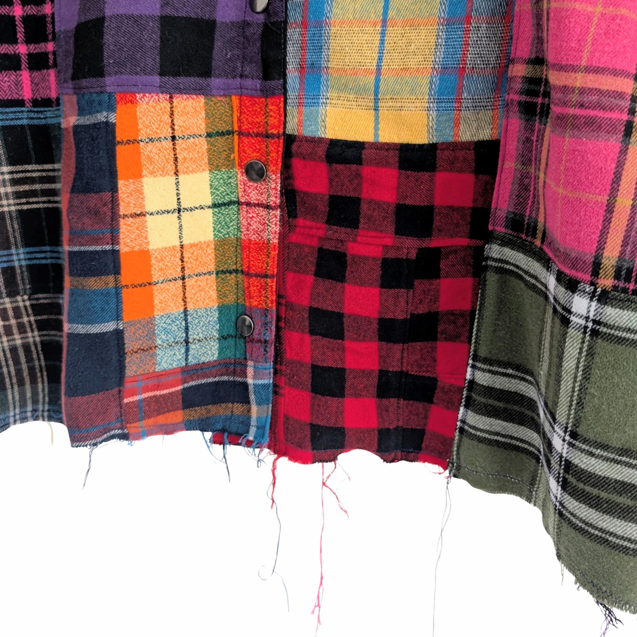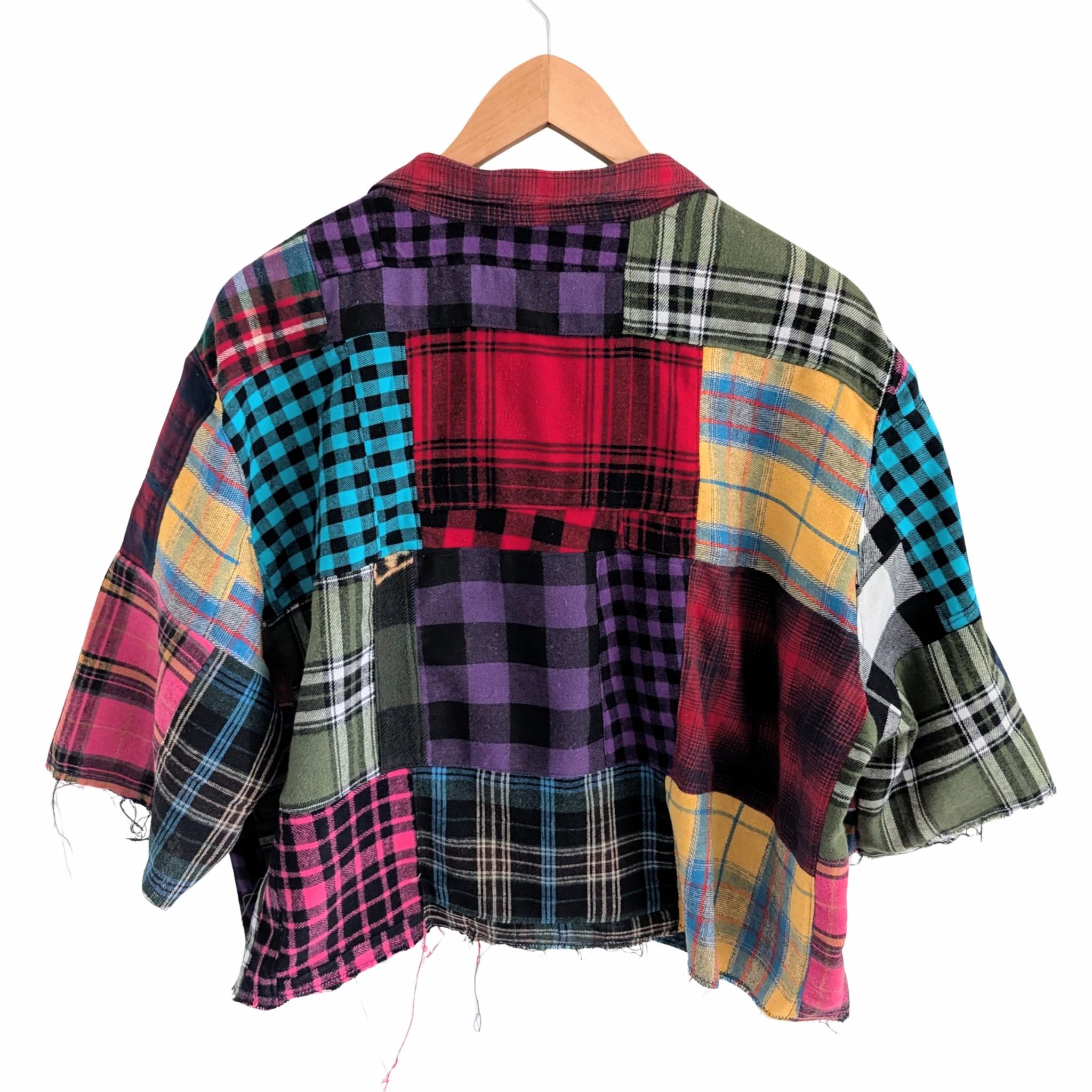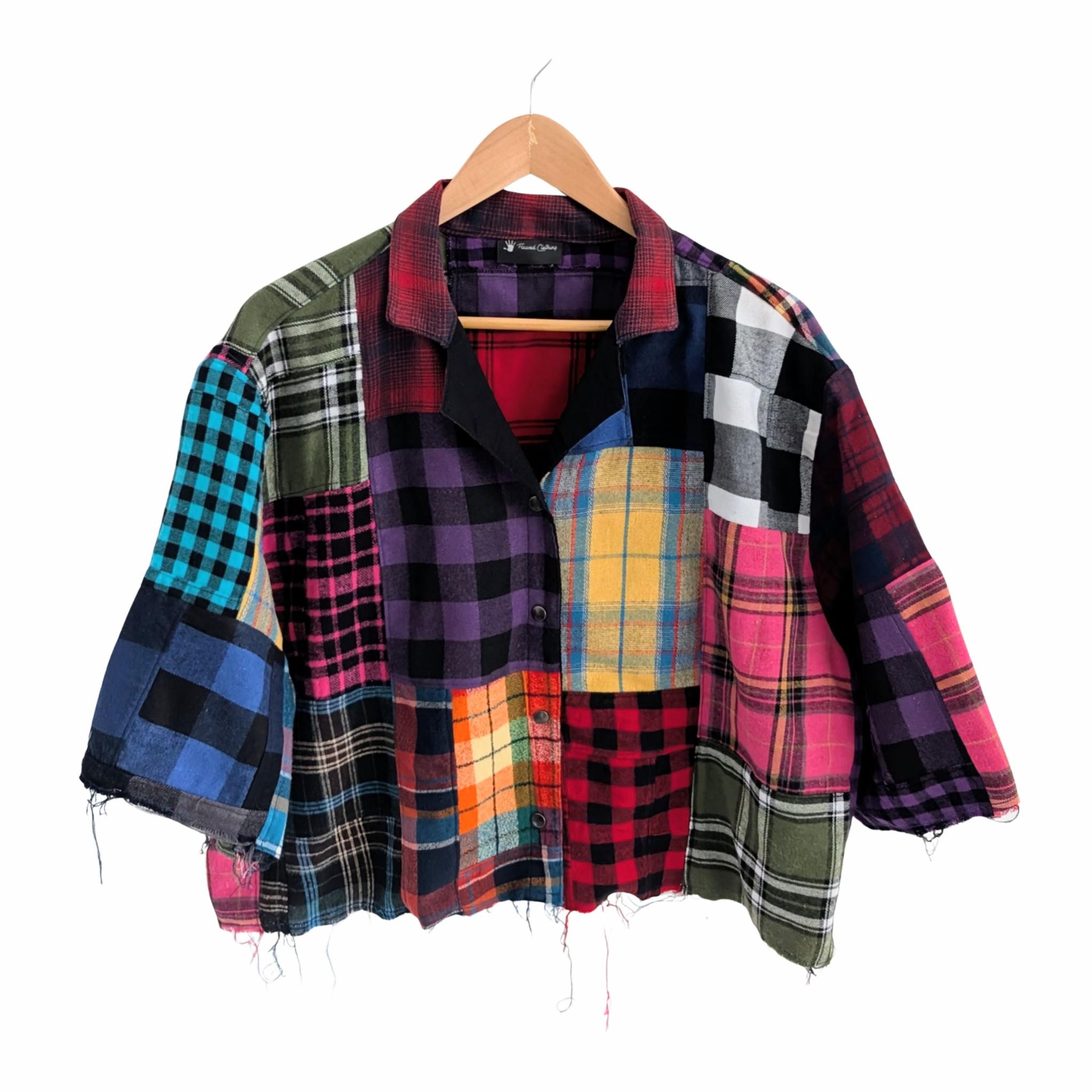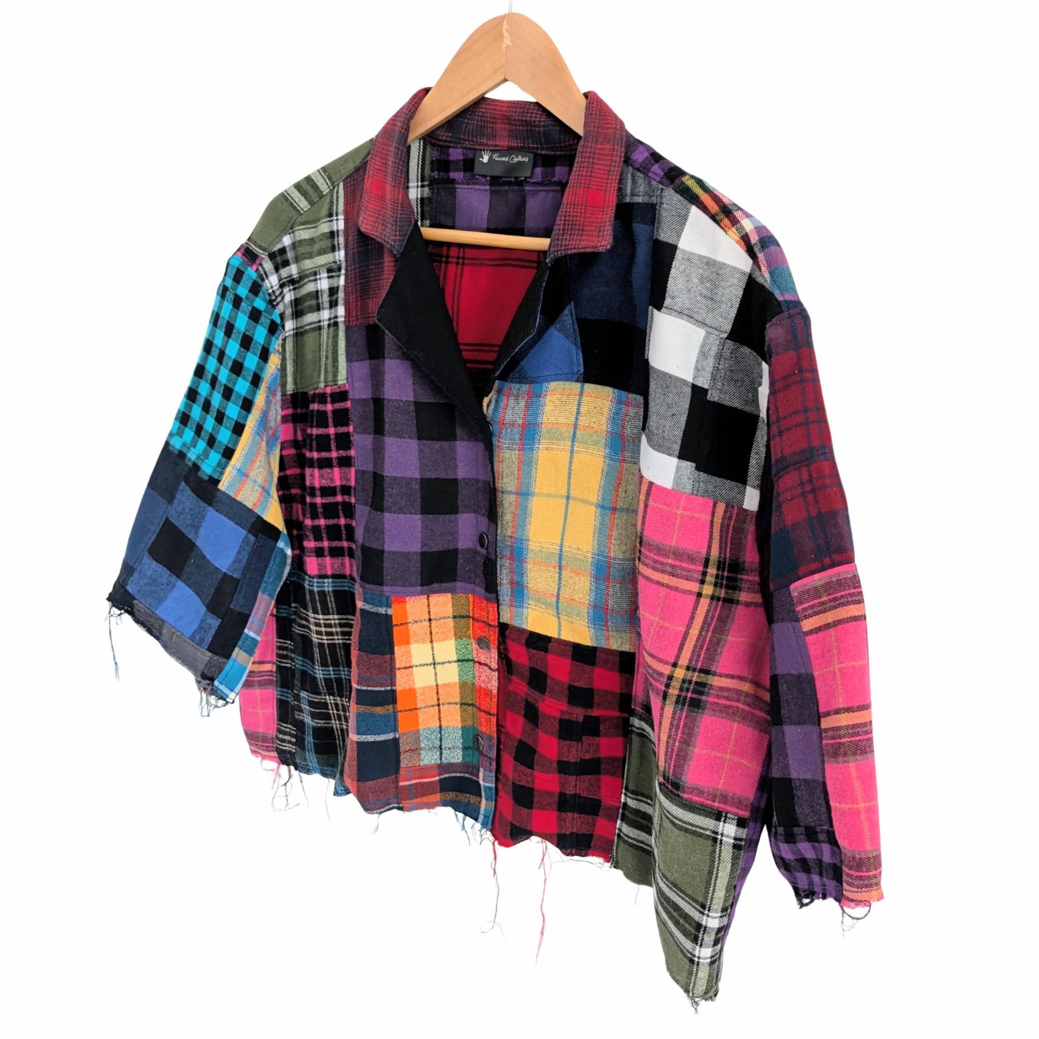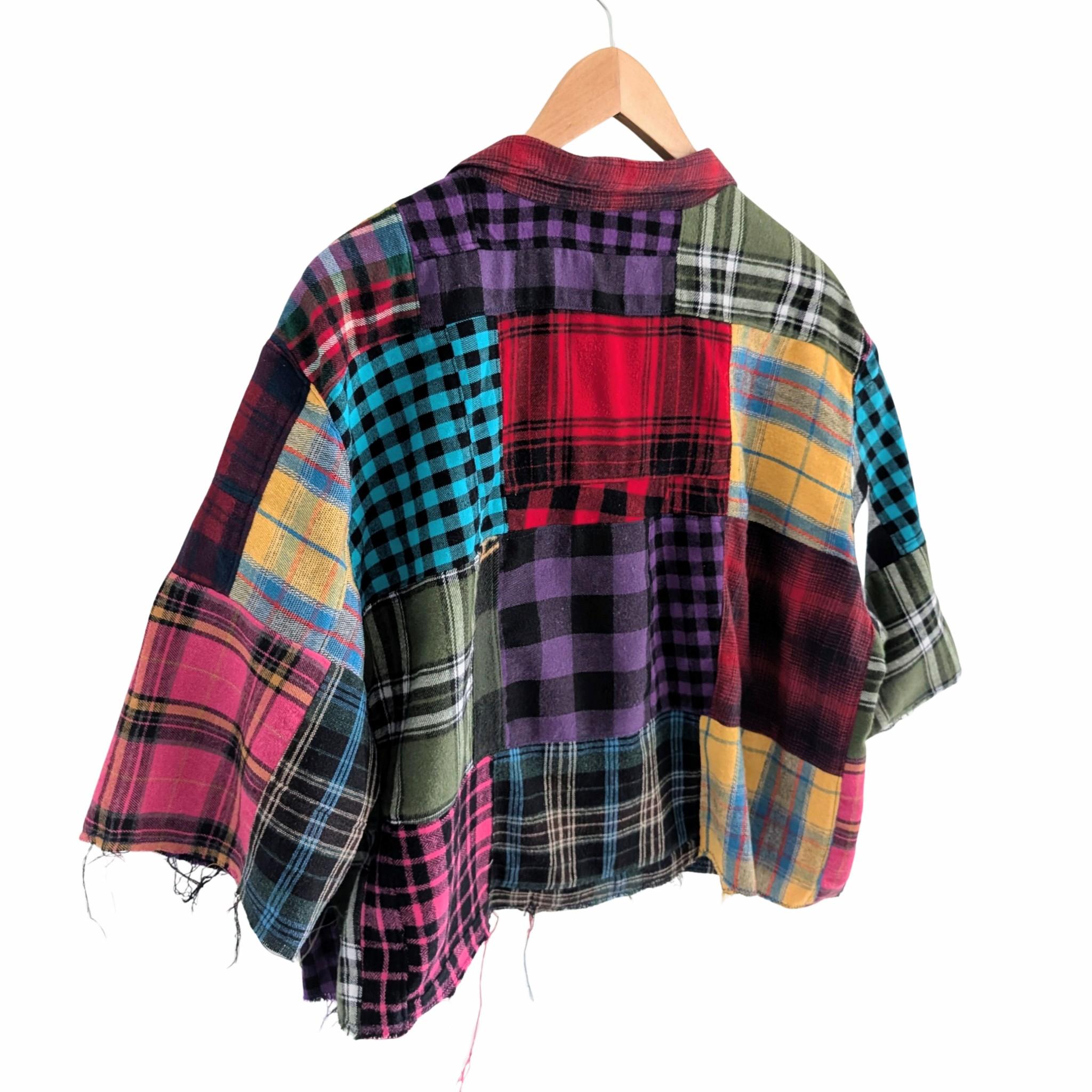 Built using the relaxed silhouette of the Boxcar Shirt, this one-of-a-kind piece transforms the traditional button down into bold wearable art. Crafted from carefully pieced plaid flannels, every panel brings its own texture, color, and story—creating a statement garment that feels effortless and elevated.